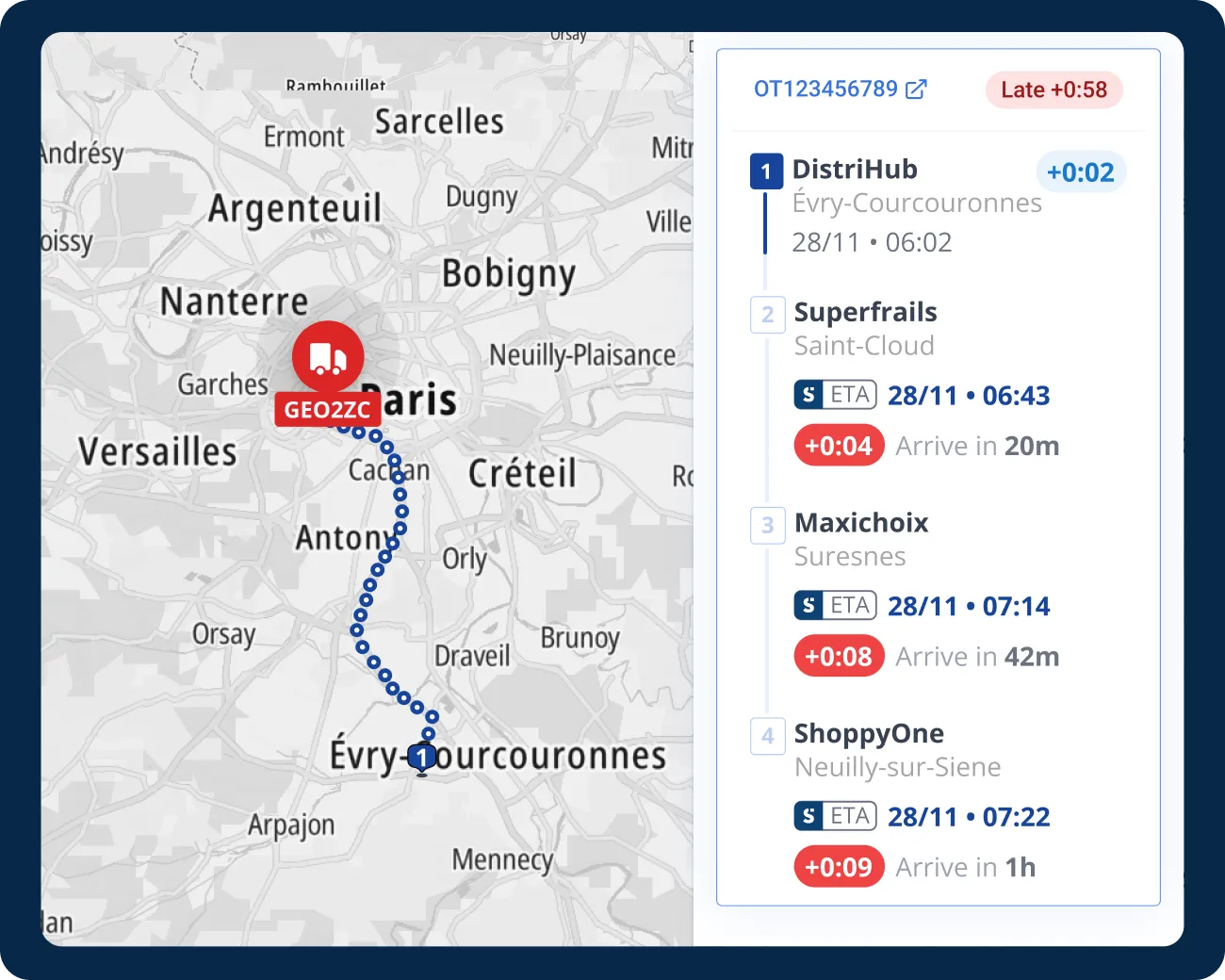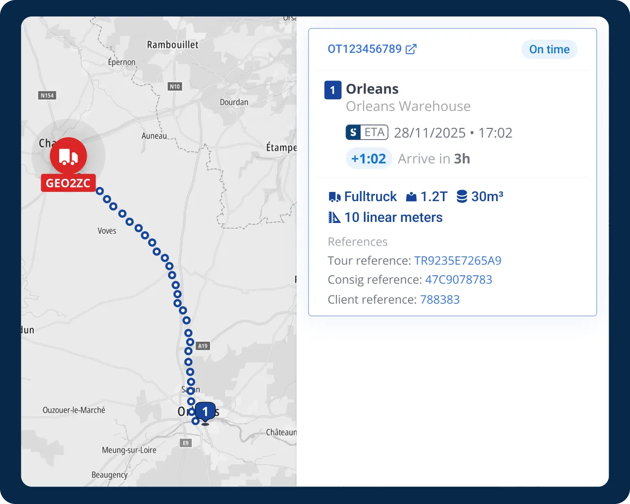 View at a glance the real-time status, location and predictive ETA for your shipment,