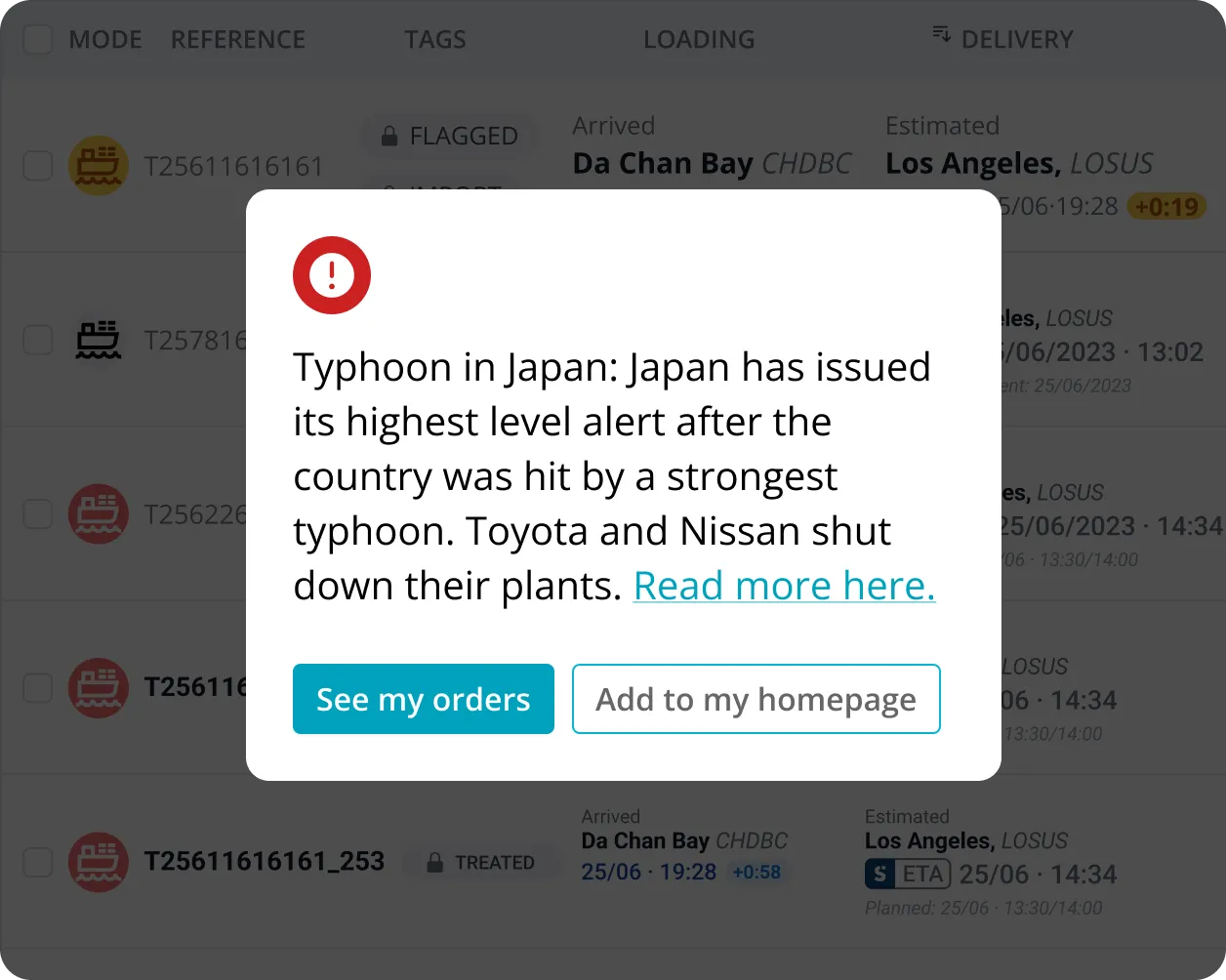 Receive alerts for disruptions, ringfence impacted shipments and prioritize actions in a fully customizable interface.